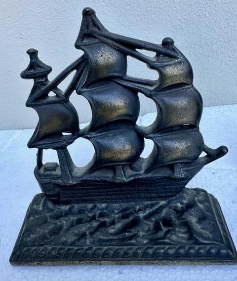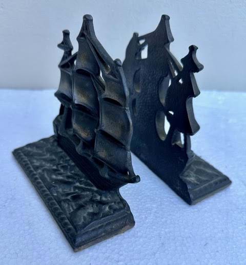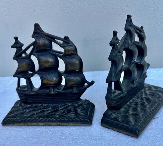 A nice pair of cast iron Galleon bookends with their original patinated finish!