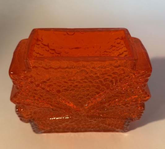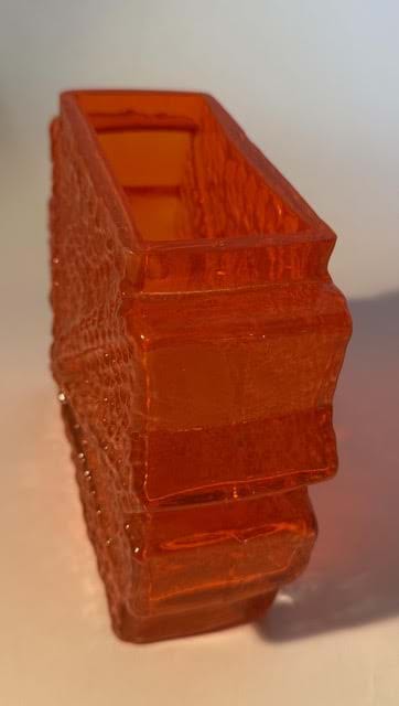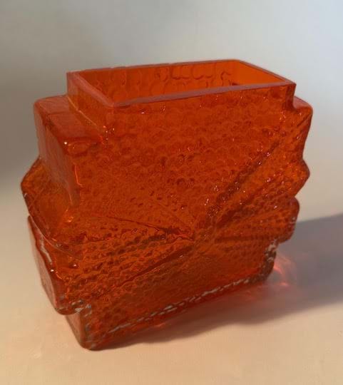A rare 1960's Nanny Still for Riihimaen Lasi Finland 'Stellaria" orange glass slab vase.