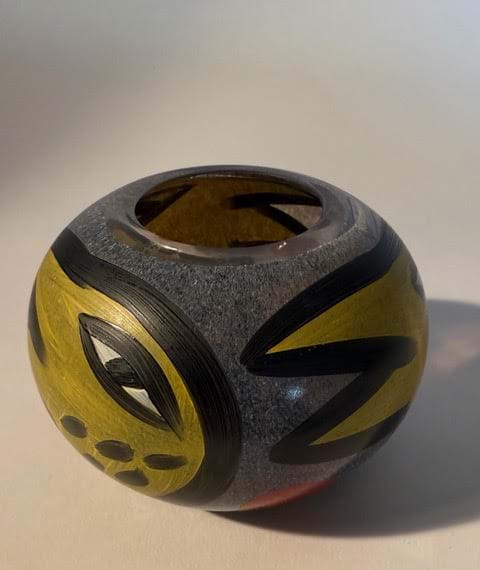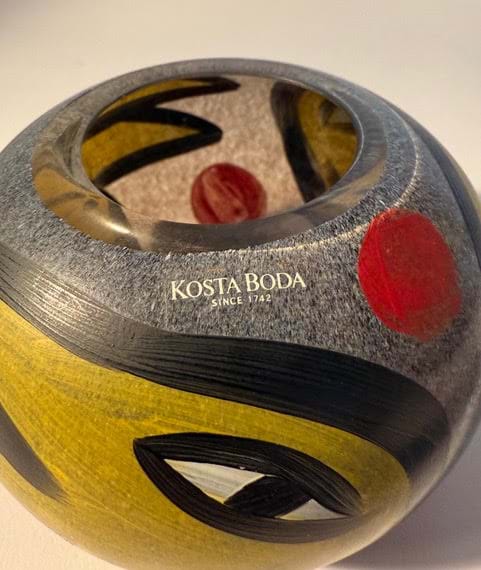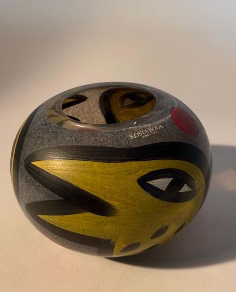 An Ulrica Hydman Vallien for Kosta Boda birdy series hand painted glass vase.