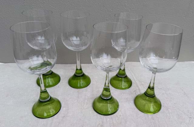 A very attractive set of 6 Rosenthal Studio Line 'Clarion' crystal wine glasses with green bases.