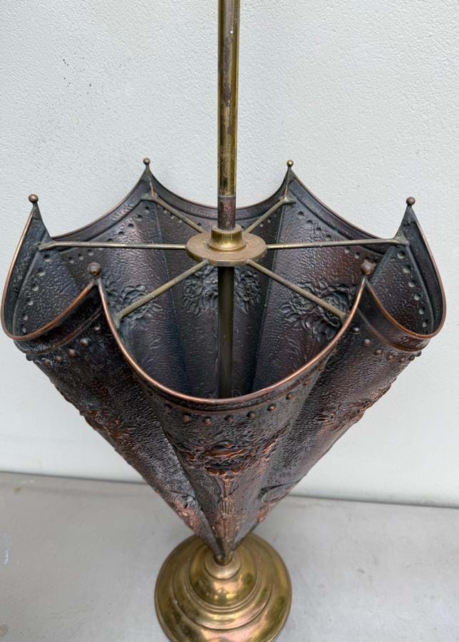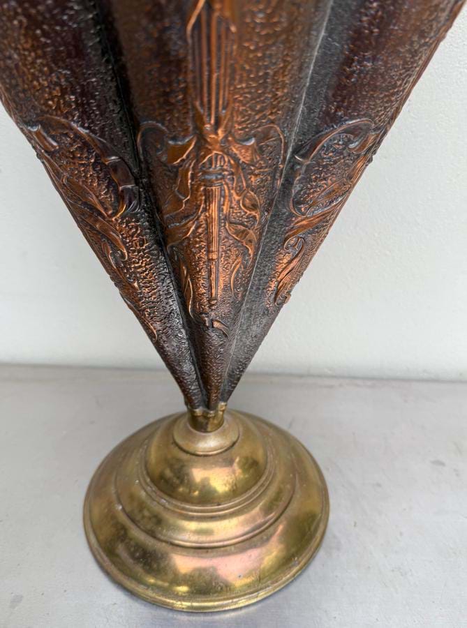 A very nicely made 1950's French brass/copper umbrella stand with embossed detail...including the handle!