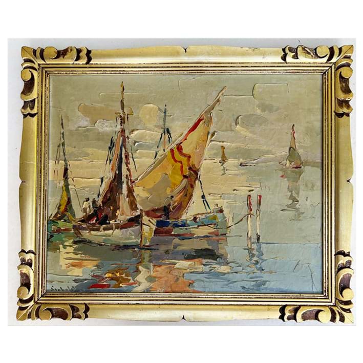 French Deco Oil on Canvas Sail Boats