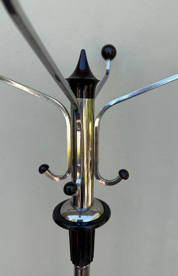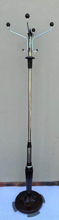 A rare 1930's Deco chrome and bakelite coat/hat stand made by Tilley.