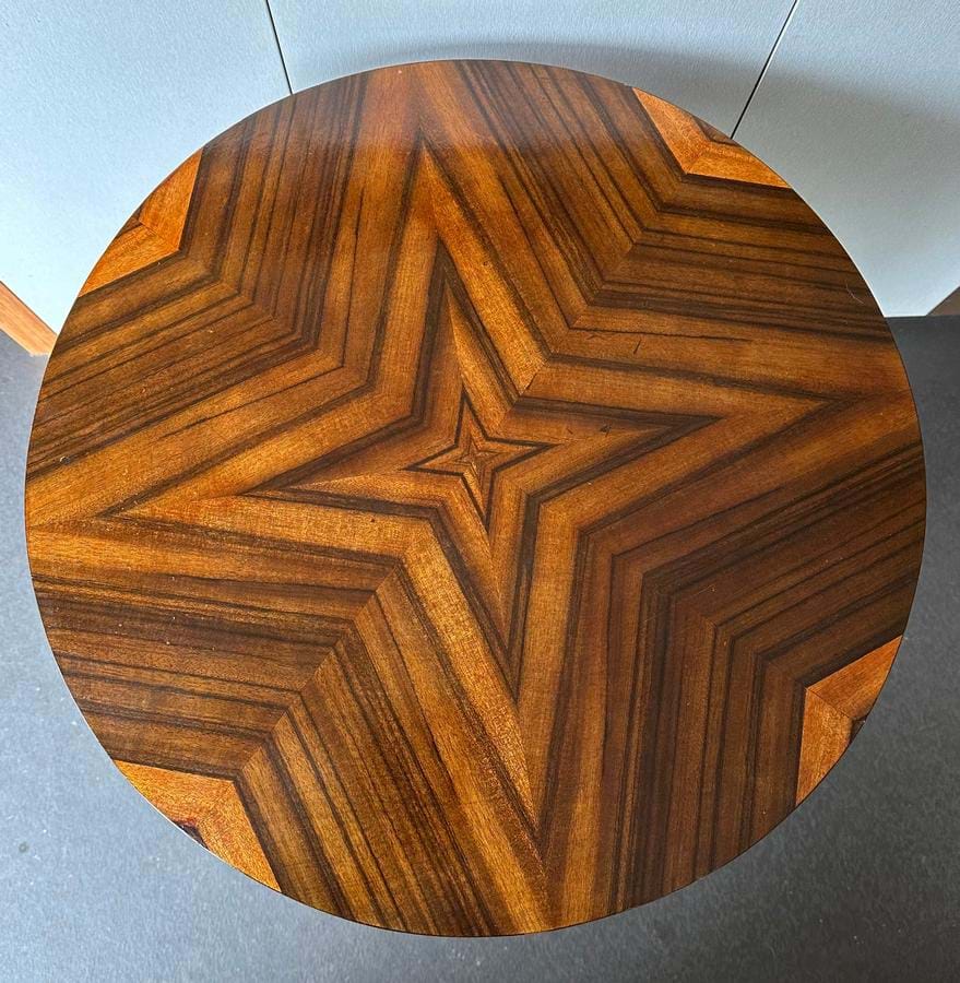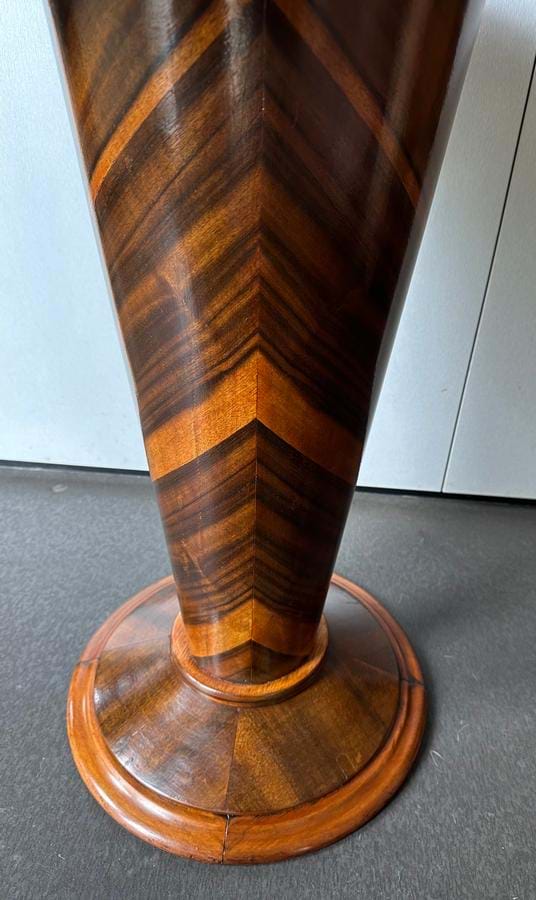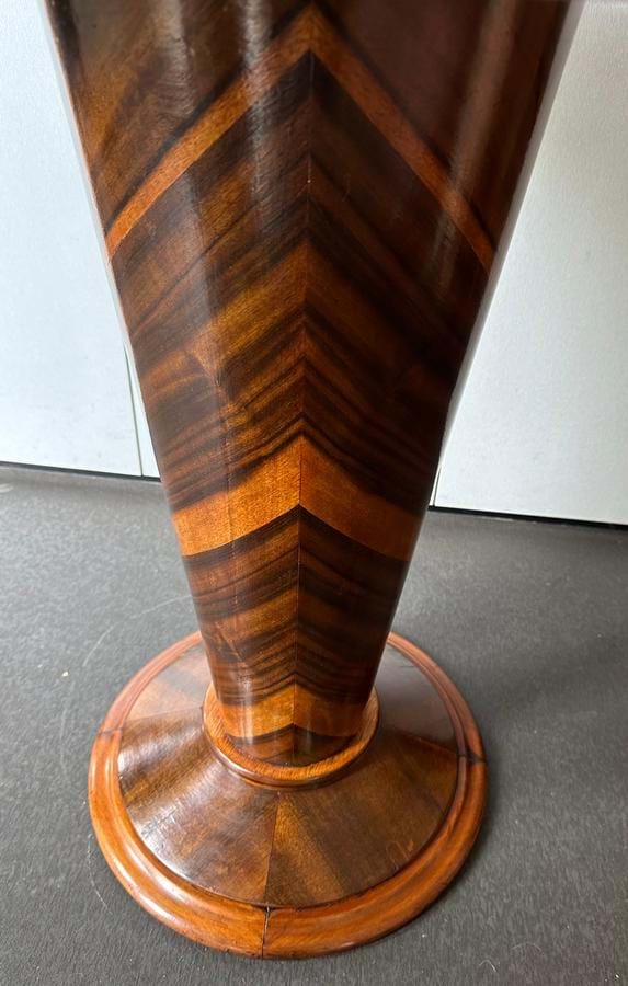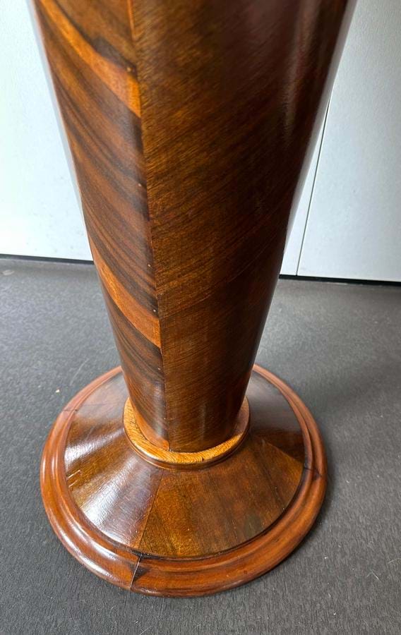 A beautiful large 1930's Deco Australian Occasional Table with unusual tapered column and lovely inlay work featuring Queensland maple and black bean timbers.