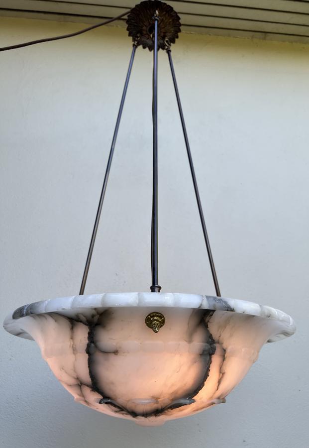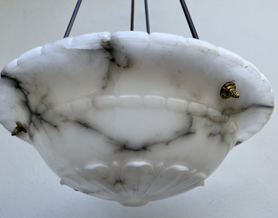 Beautiful large 1930's Deco carved Italian alabaster ceiling light shade with lovely detailing and carving.....along with very striking veining!