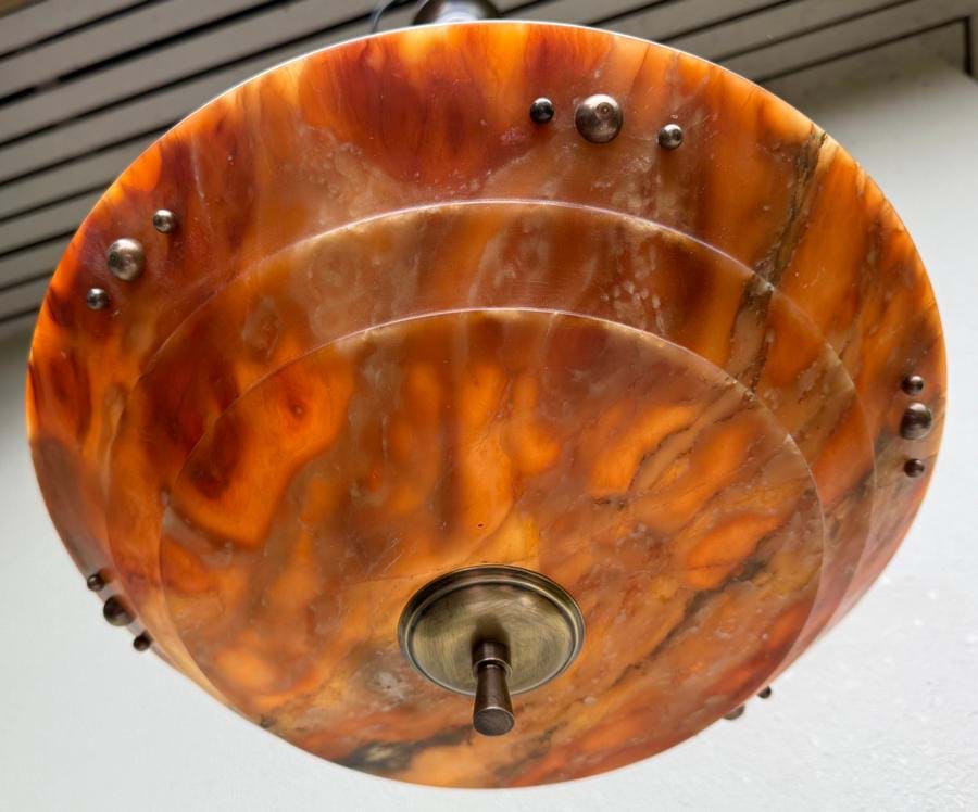 Even better, fixture retains its matching alabaster ceiling cap!