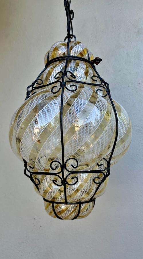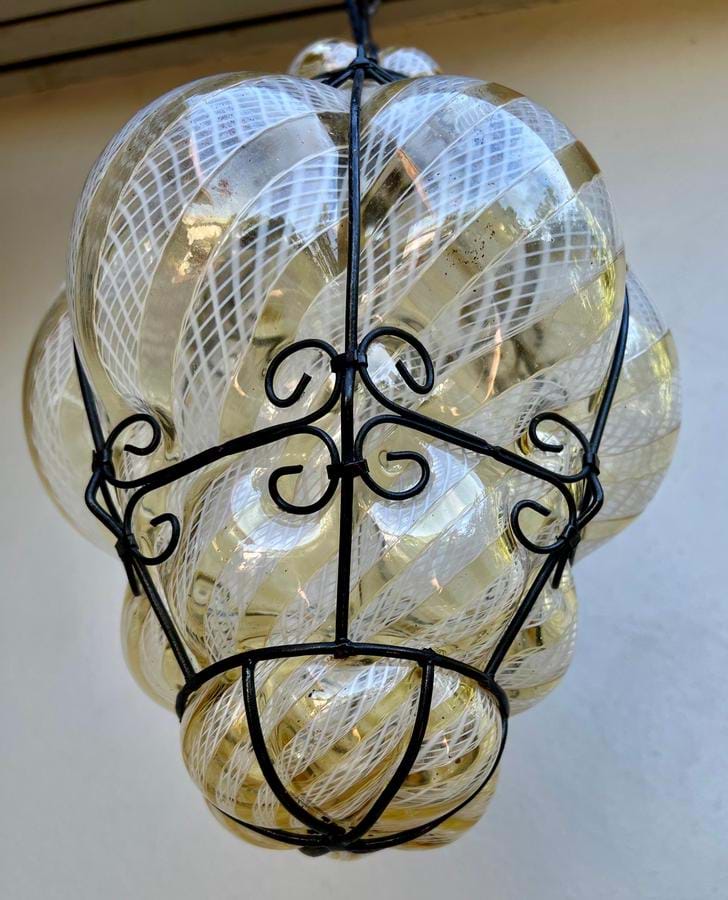 A large 1950's Italian Murano mid-century Latticino glass cage light.