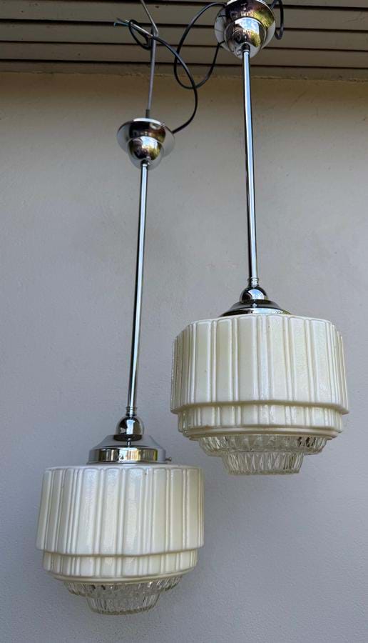 Shades are in excellent condition and come with chrome rod suspension fittings.