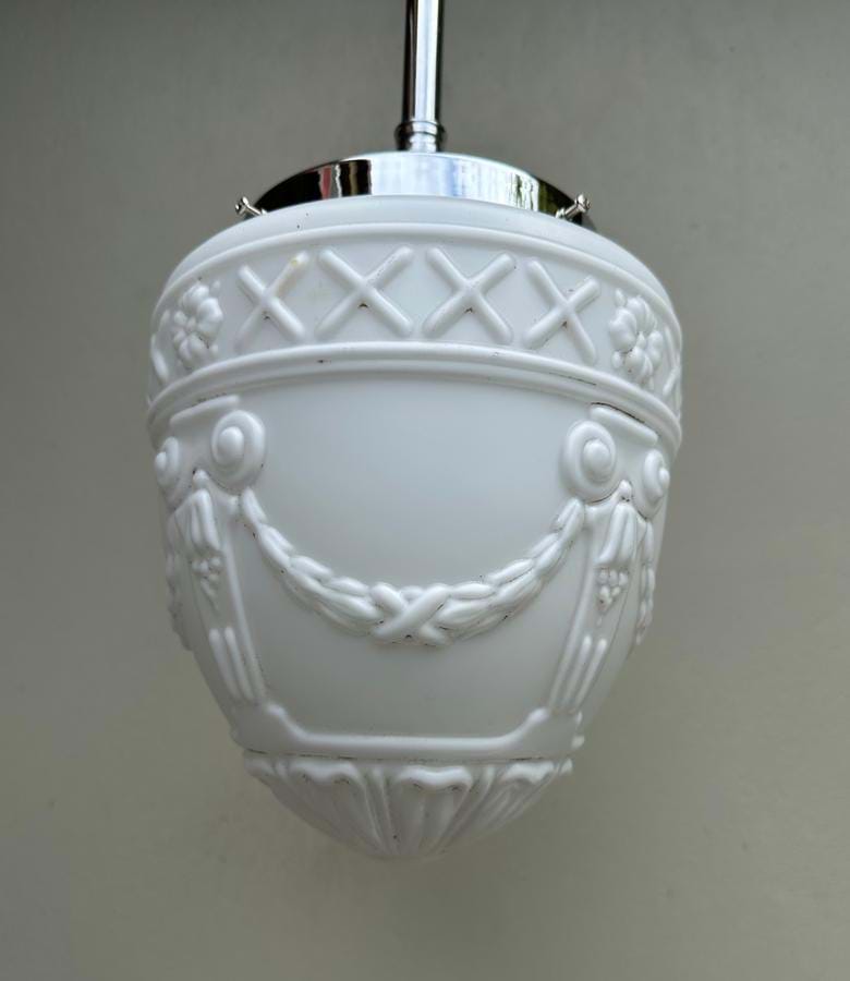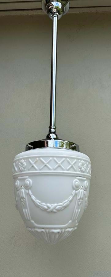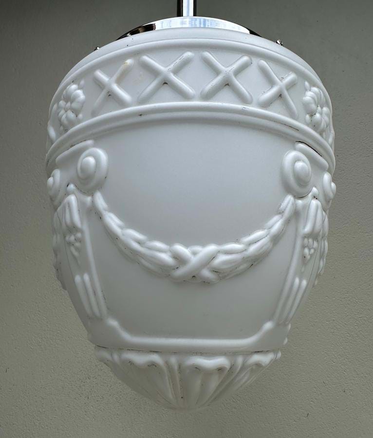 Great pair of large 1920's/30's moulded white glass pendant light shades.