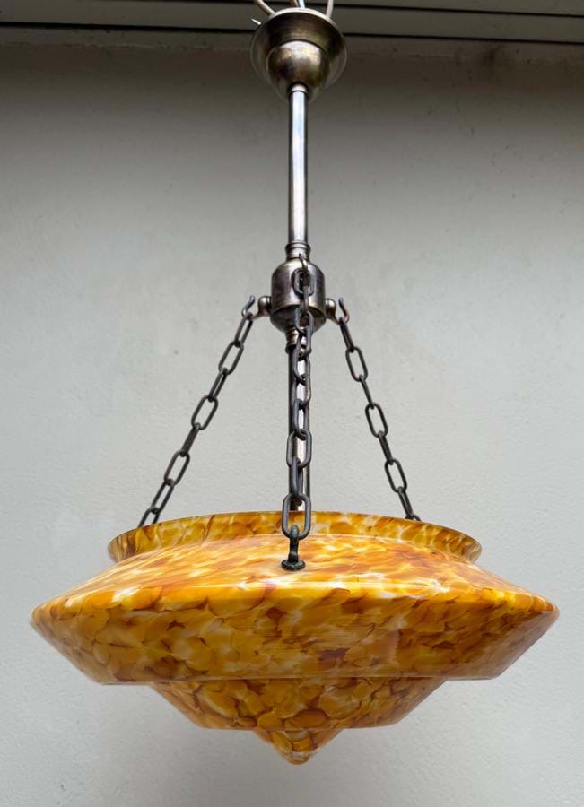 Asuperb large moulded 1930's Deco cased tortoiseshell glass shade...great shape/ colours and one of the best examples of Czech/Bohemian glass making of the time.