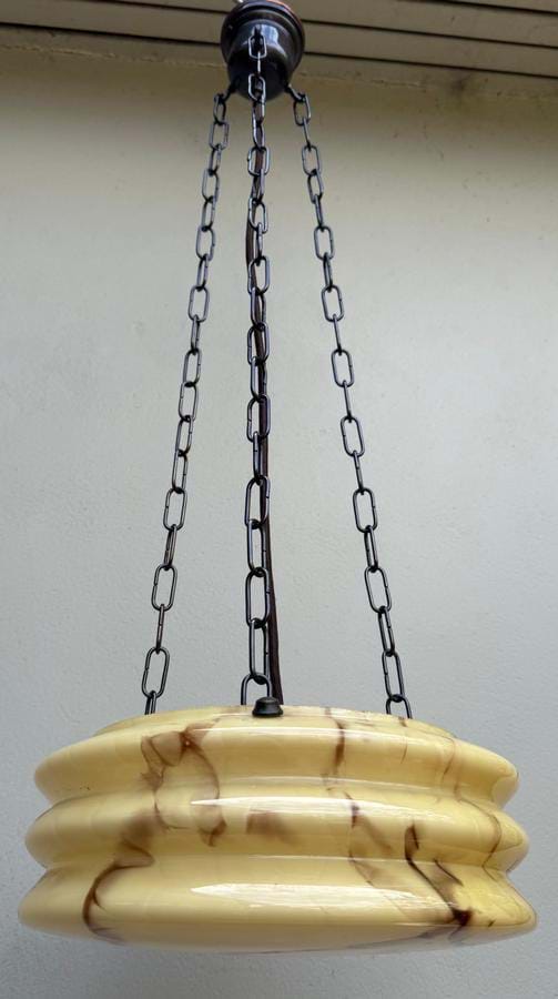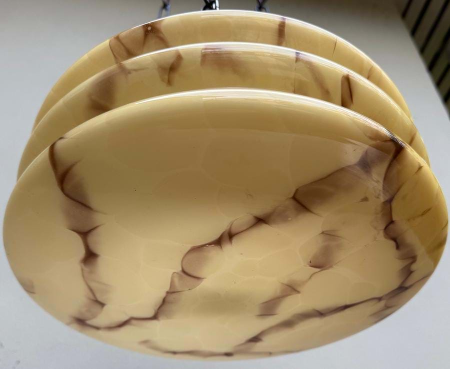 A very nice 1930's Deco cream/yellow ribbed glass shade with brown veining.