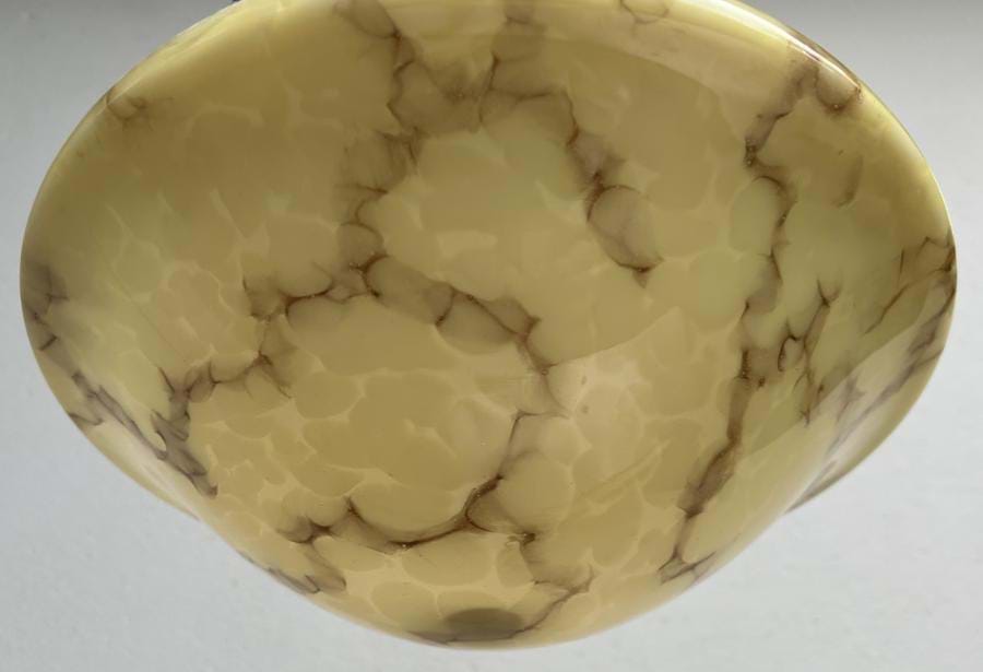 A lovely 1930's Czech Deco moulded yellow glass ceiling light shade with brown veining.