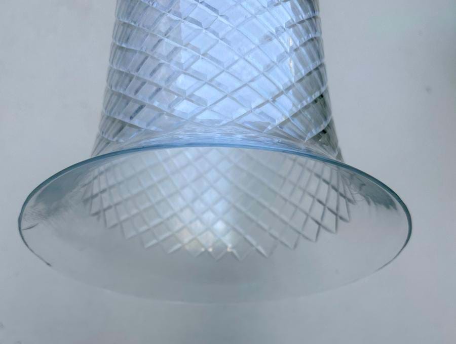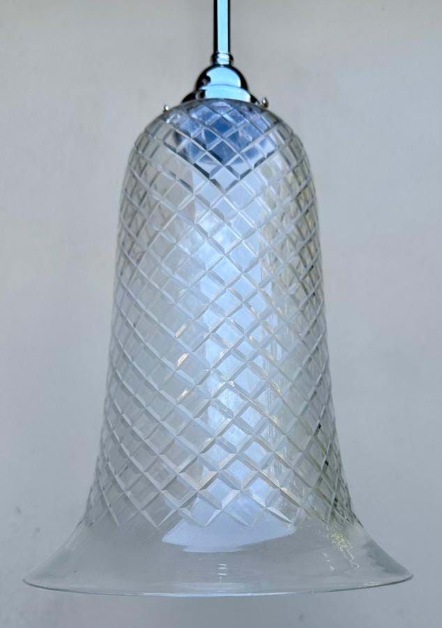 Large 1950's/60's French etched clear glass diamond pattern bell shades......we currently have 3 matching in stock.