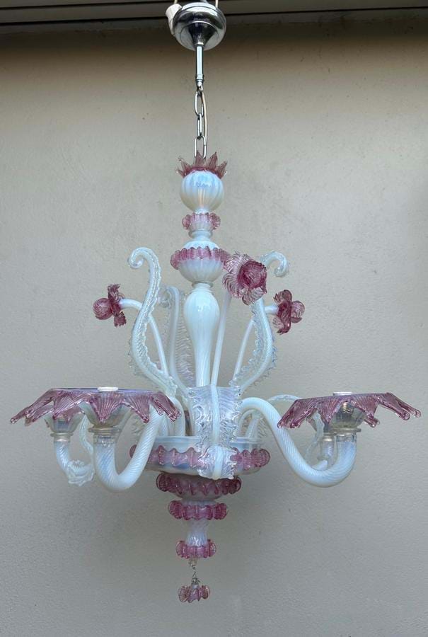 Italian Murano Pink/Opalescent Chandelier