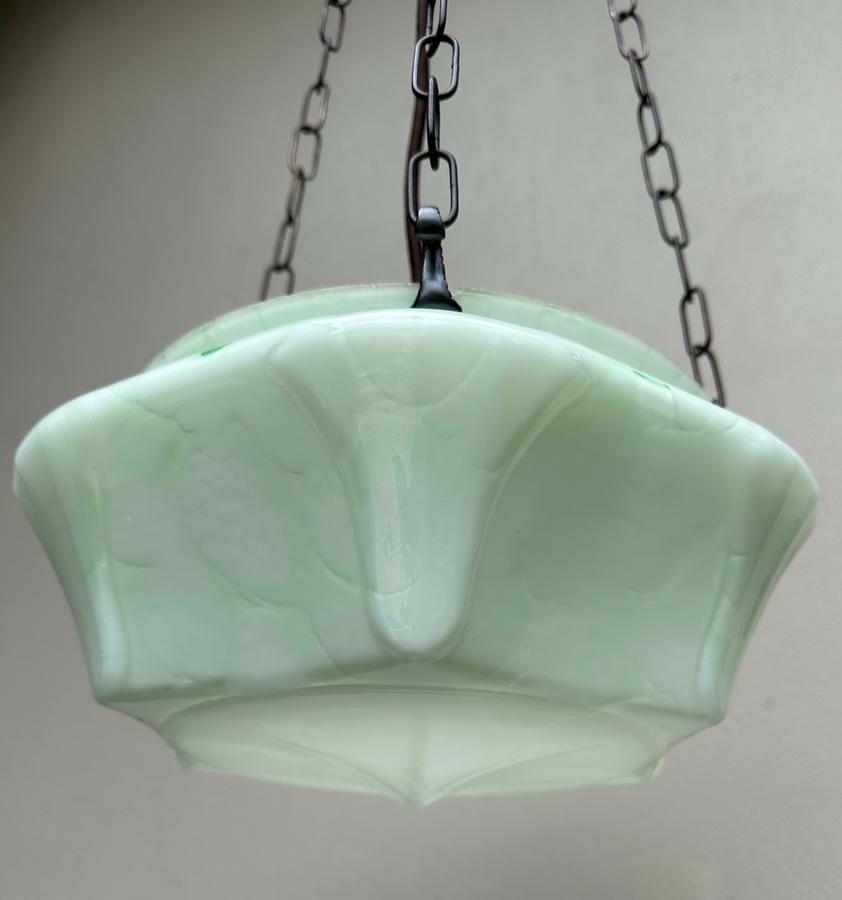Unusual Deco Green Glass Light Shade