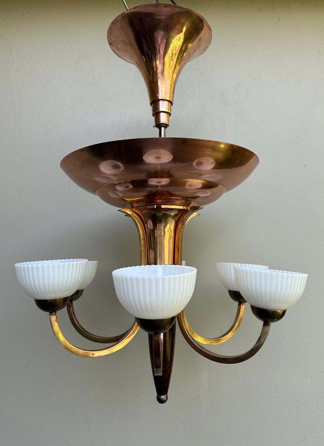 French Deco Copper 9 Light Chandelier