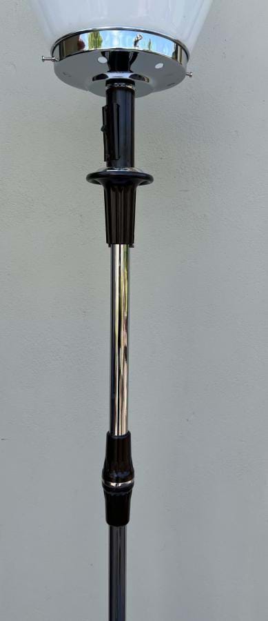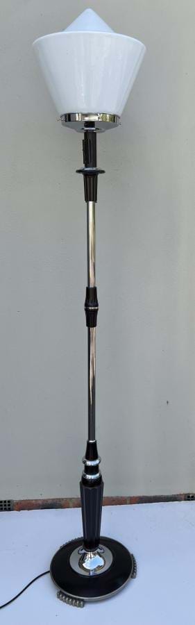 A fantastic 1930's Deco chrome and bakelite floor lamp made by Tilley.