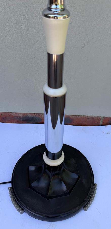 A fantastic 1930's Deco chrome and bakelite column floor lamp made by Tilley.