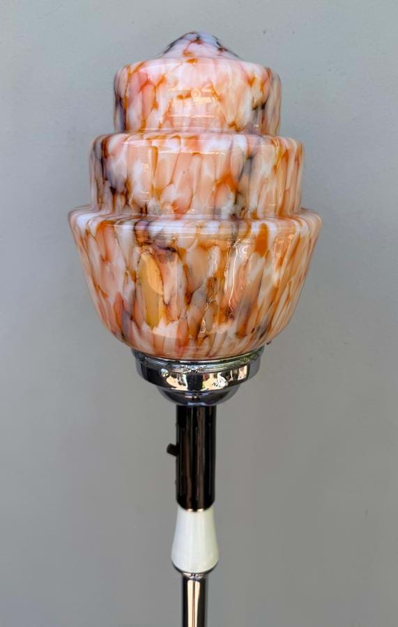 Comes with and equally impressive original stepped orange/blue/black glass shade and has been fully re-wired.
