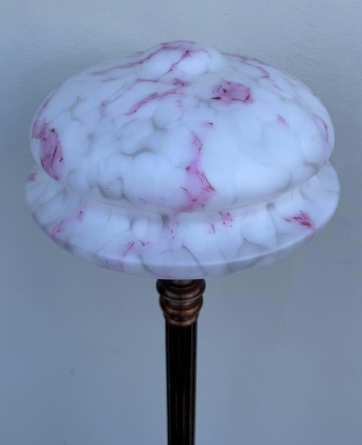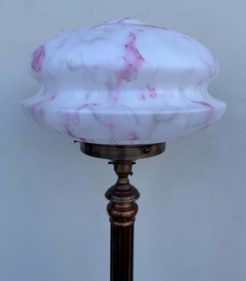 Lamp is very nicely designed and made, and comes with original moulded white/pink glass shade.