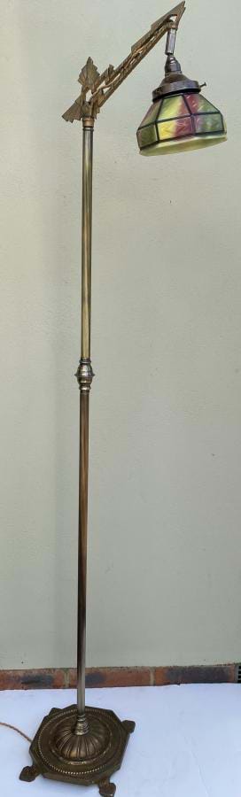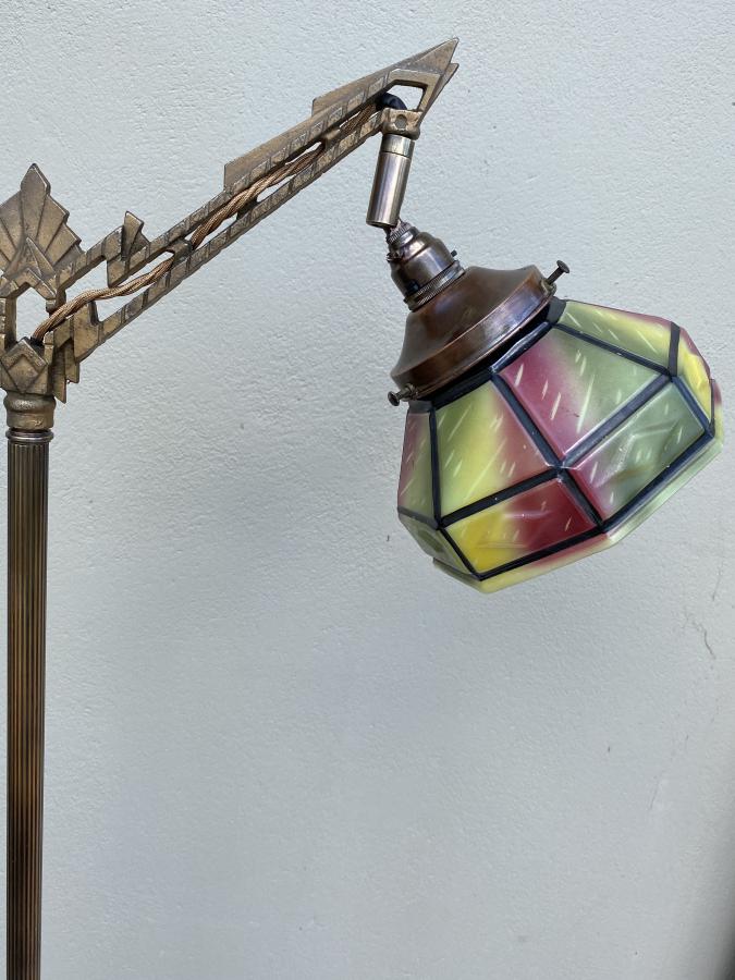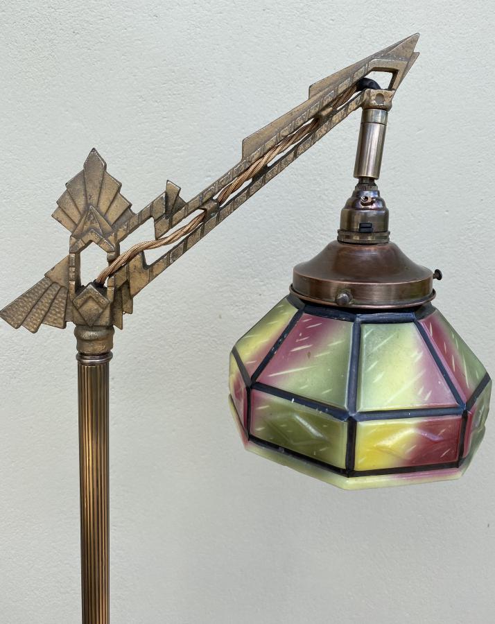 Comes with original decorated hexagonal glass shade and has been fully re-wired.