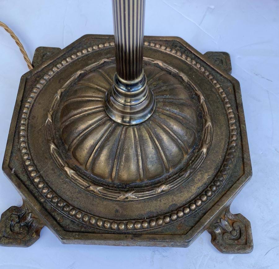 An exceptional 1930's American brass and cast iron column floor lamp with a great Deco design.