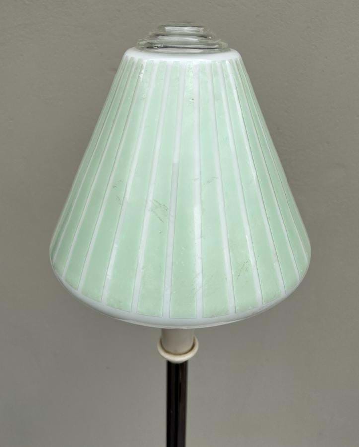 The lamp has been fully re-wired and comes with original green/white conical glass shade.