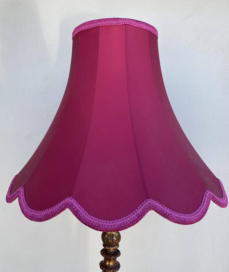 Lamp still retains much of its original red painted highlights and comes with a (new) lined crimson fabric shade.