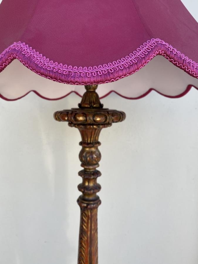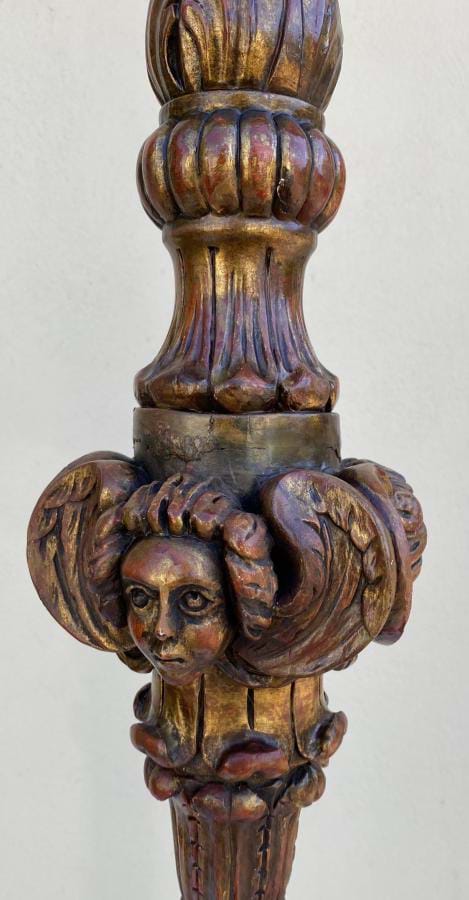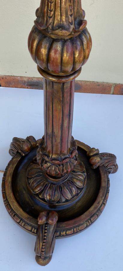 A superb 1920's/30's French....or maybe Italian.....turned and carved gilt floor lamp with figural decoration and elaborate column.