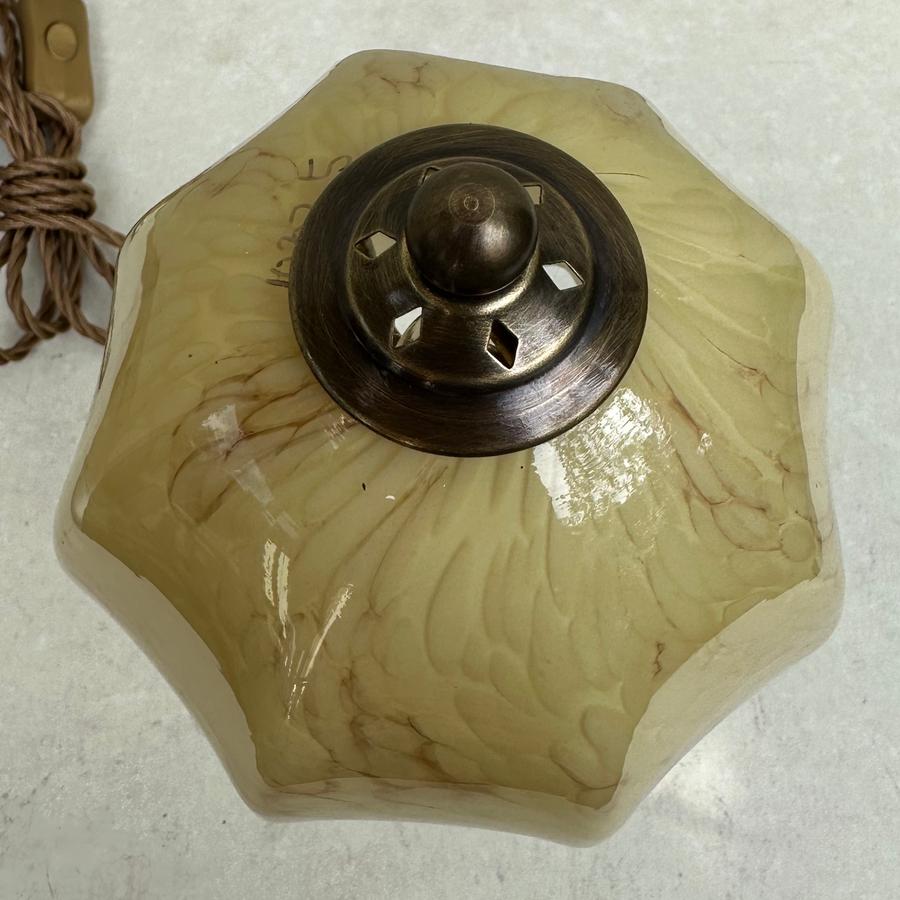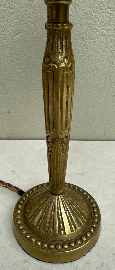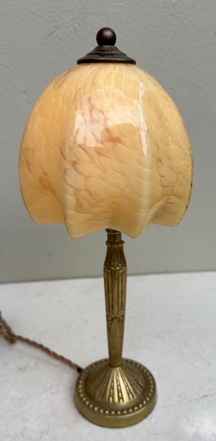 An attractive petite French 1930's/40's brass lamp with original moulded cream/caramel veined glass shade.