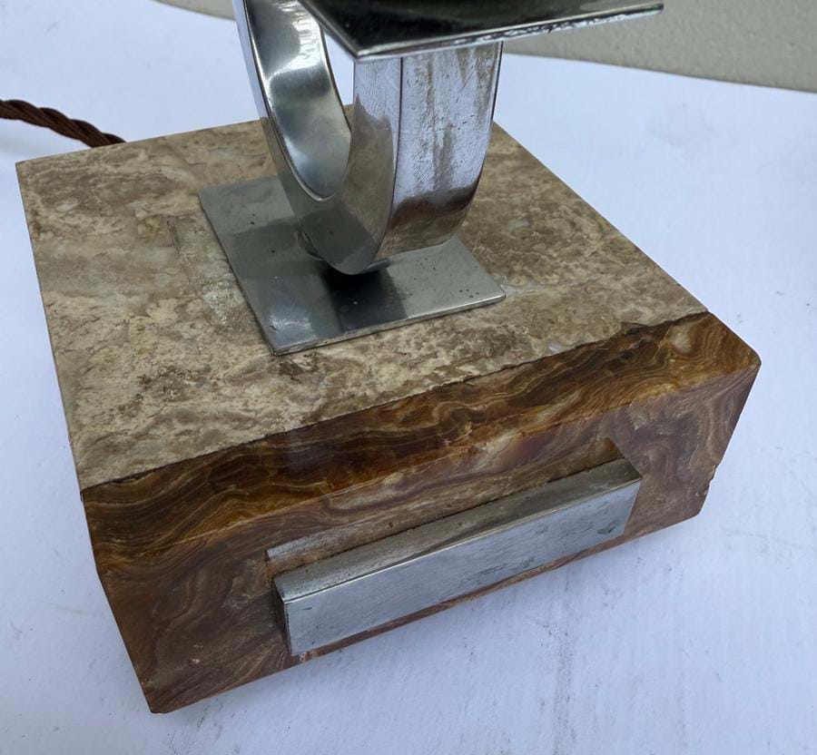 A fantastic pair of unusual 1930's French Deco/Modernist chrome lamps with solid marble and onyx bases.
