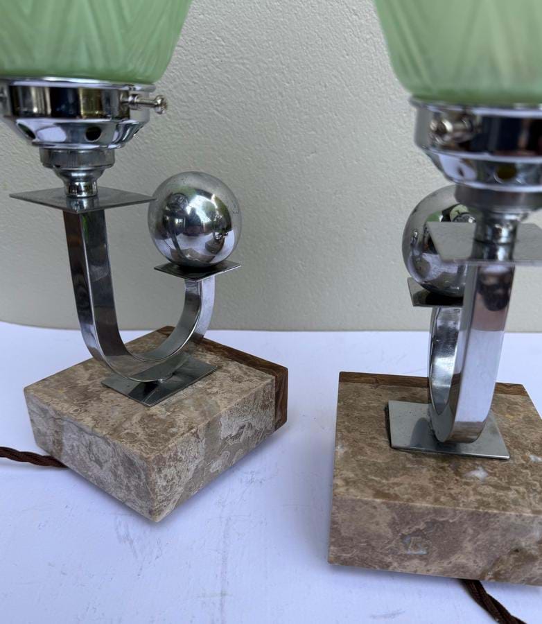 Lamps are beautifully designed/made and come with original moulded green glass shades.