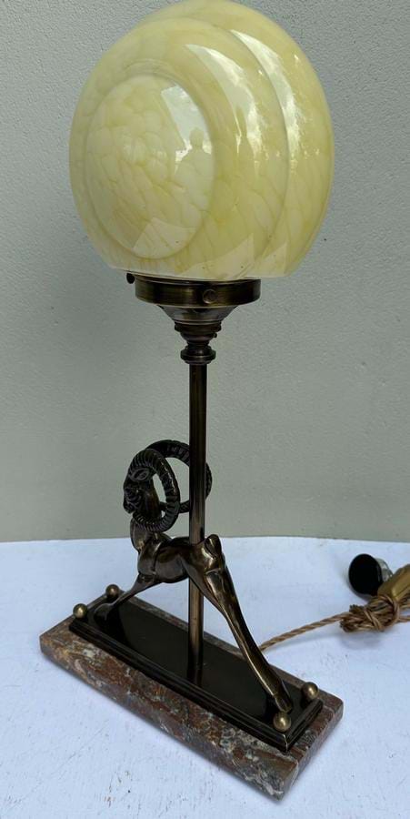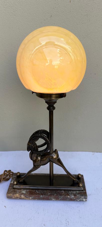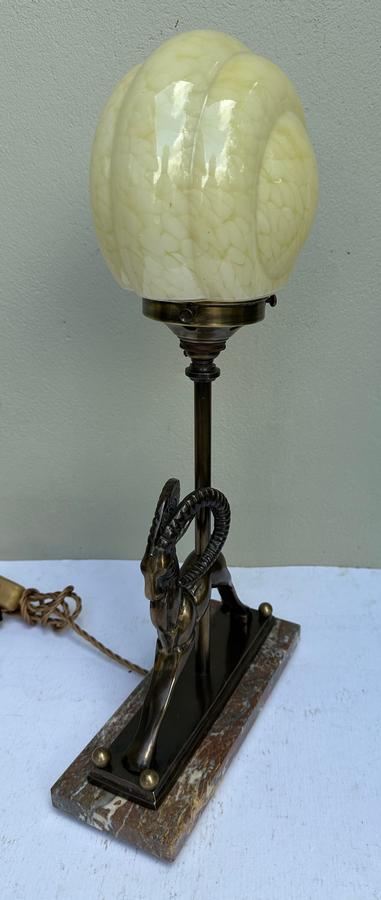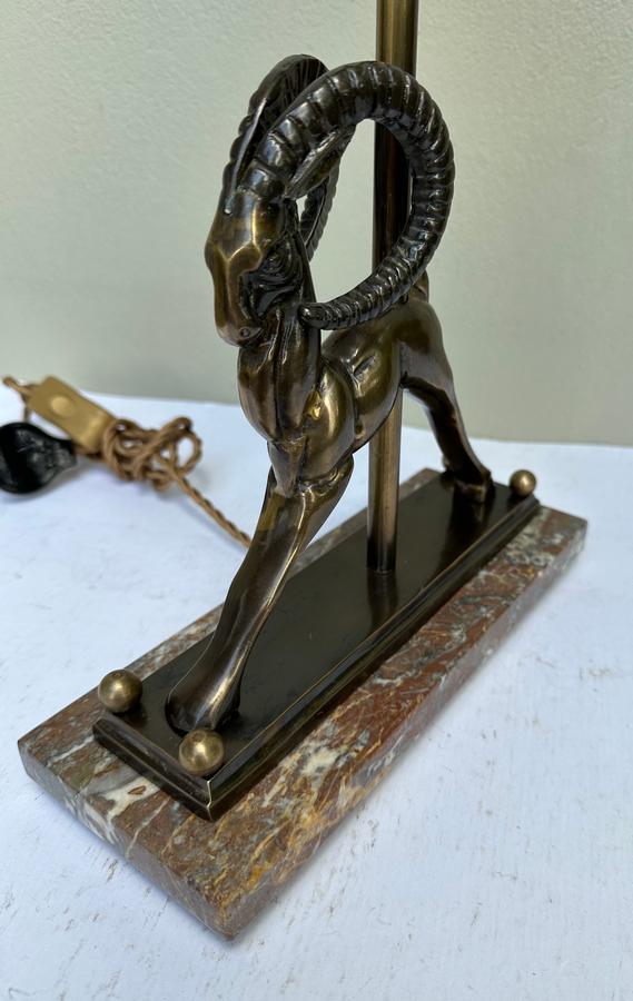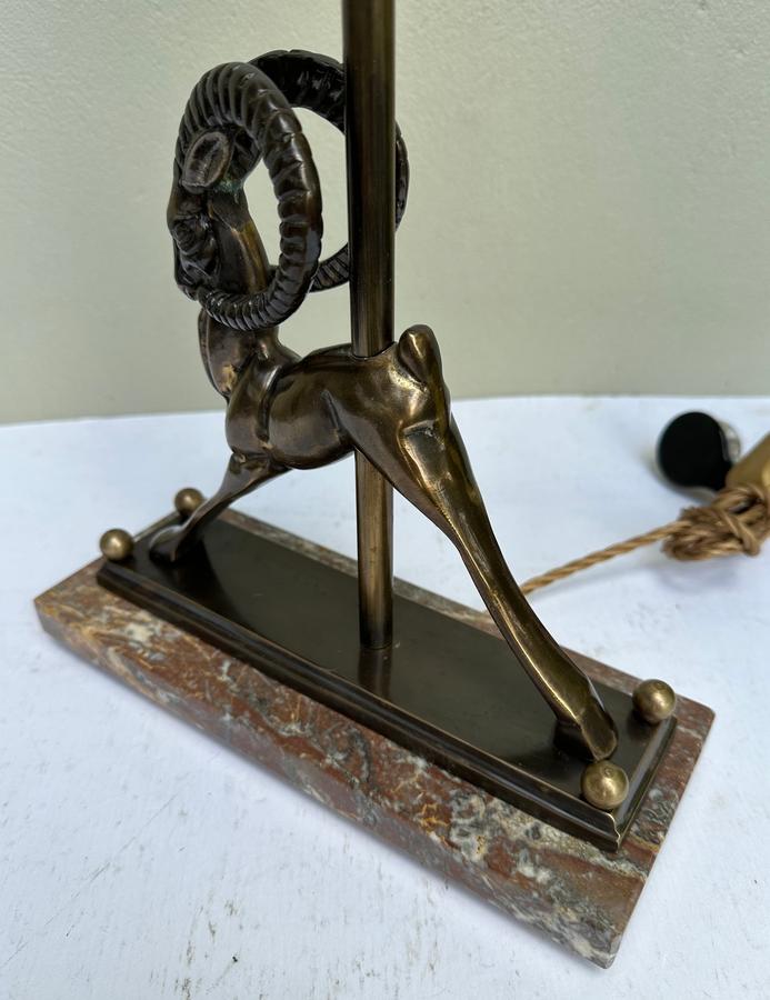 A very stylish 1930's French Deco solid bronze gazelle lamp mounted on a beautiful Belgian rouge marble base.