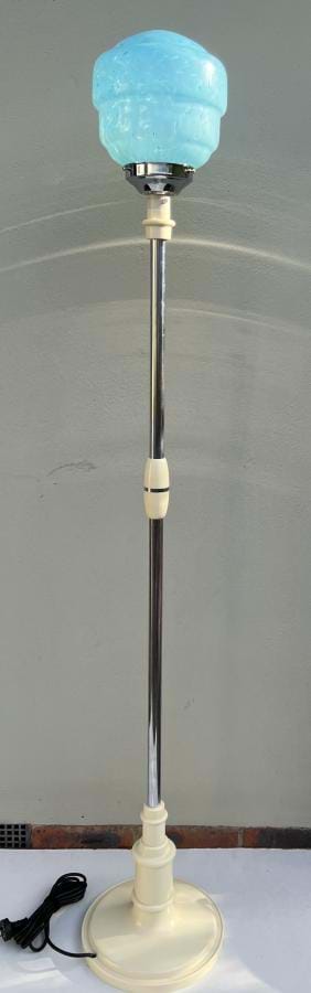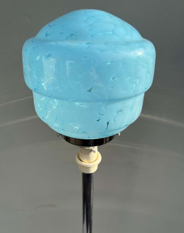 Comes with original moulded blue marbled glass shade and has been fully re-wired. I