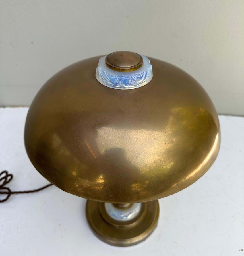 A beautiful 1930's French Deco brass and opalescent glass dome lamp.