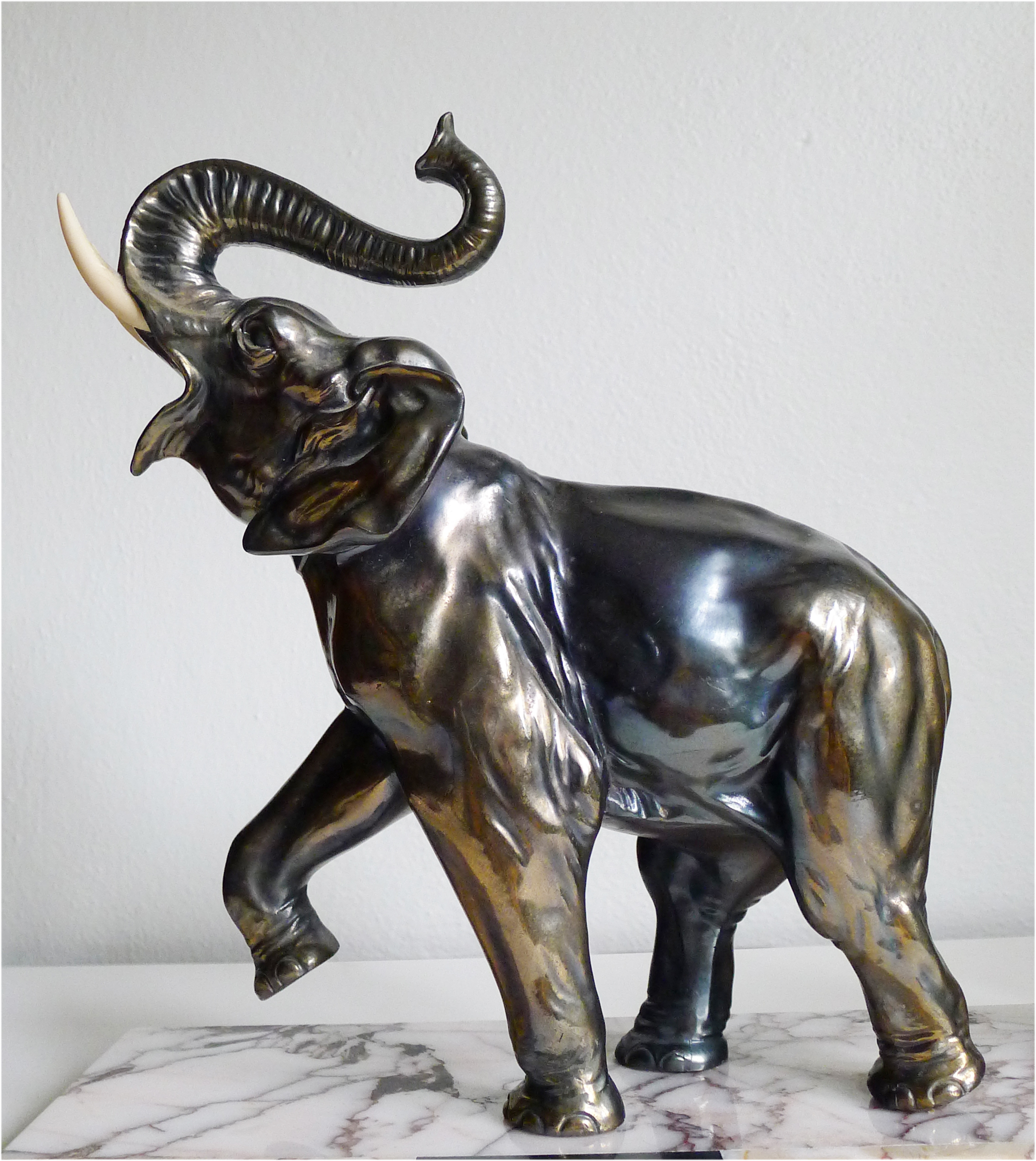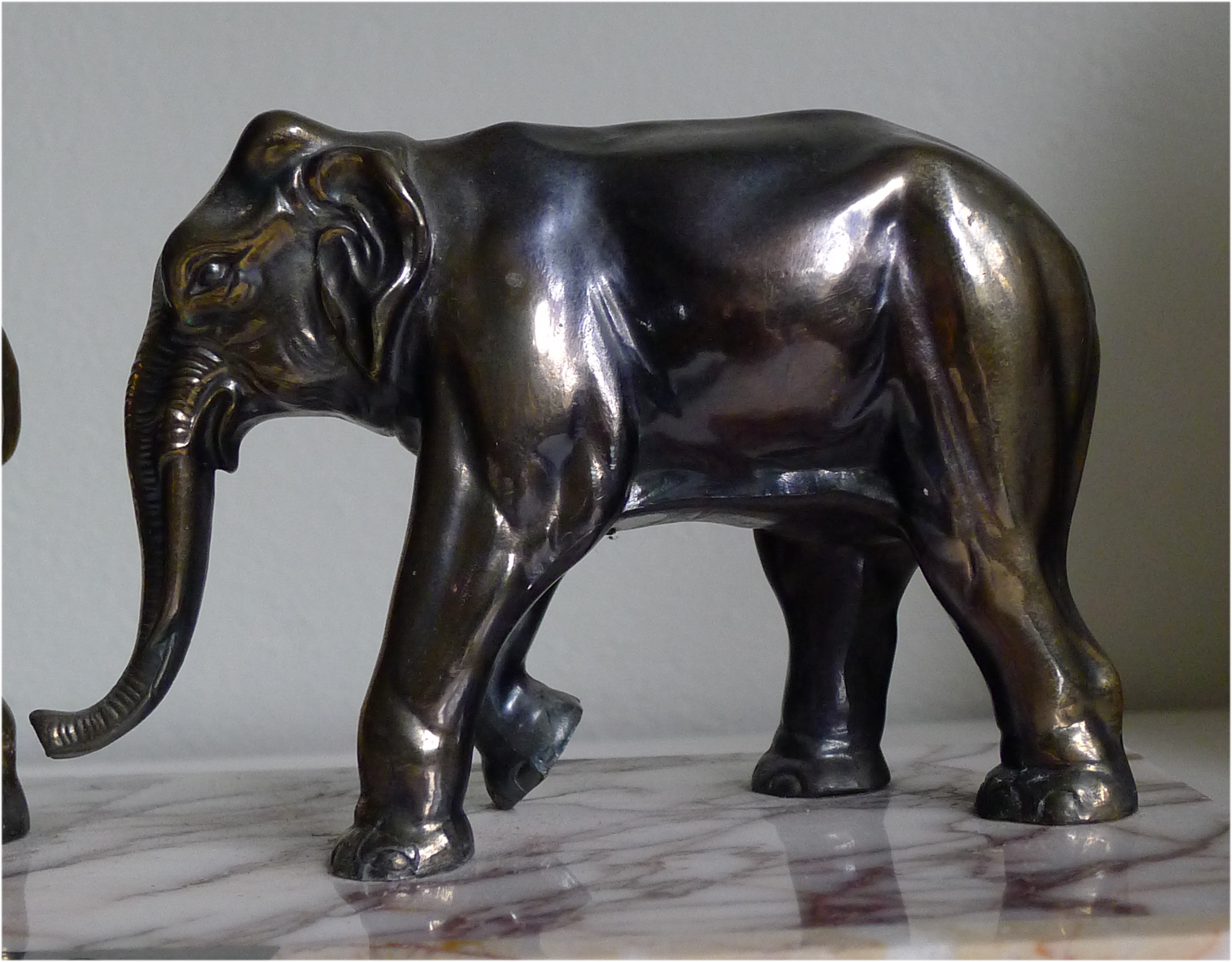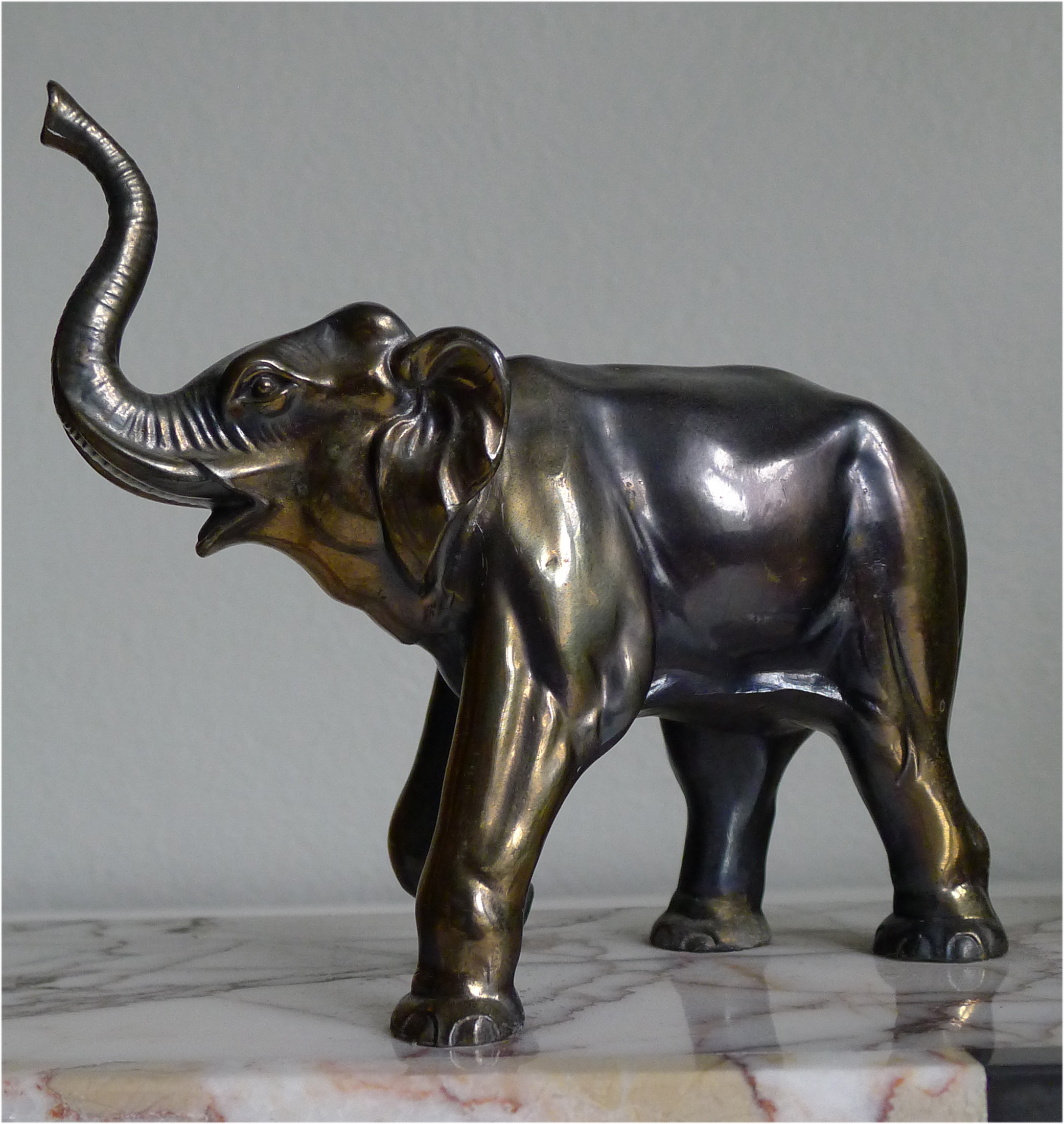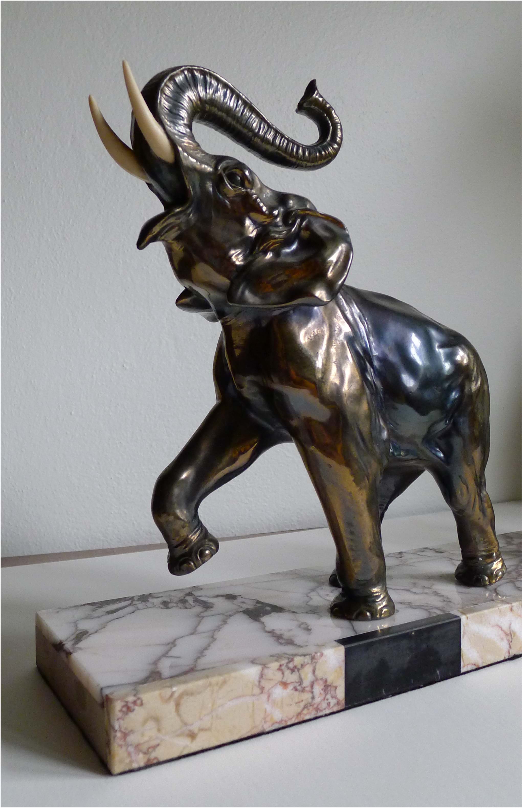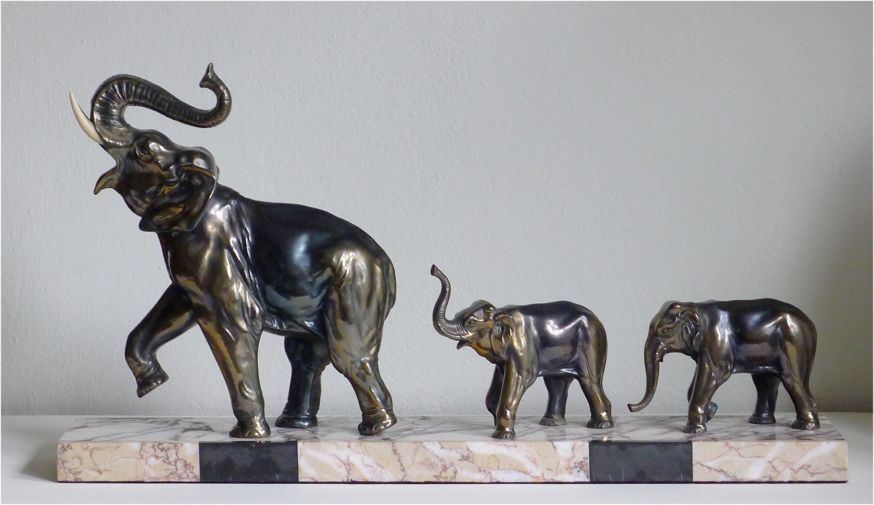 Fine 1930's French Deco sculpture of a family of elephants on a lovely marble base.