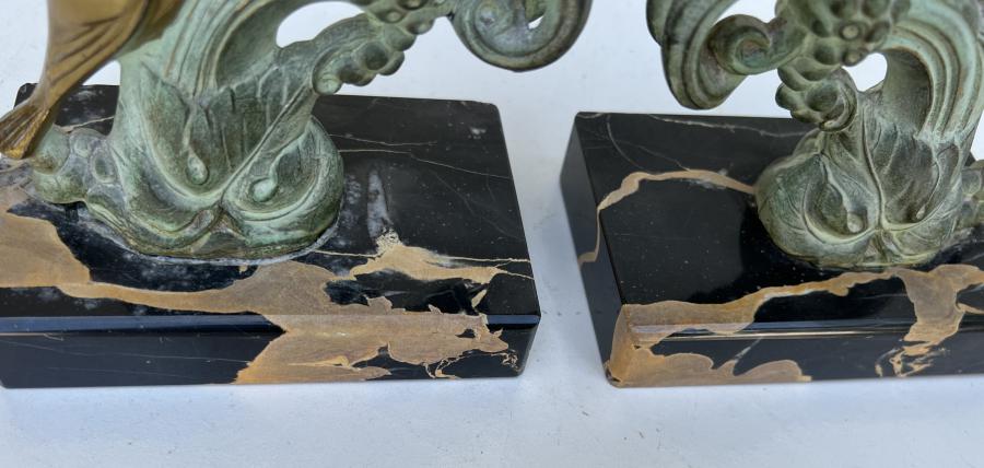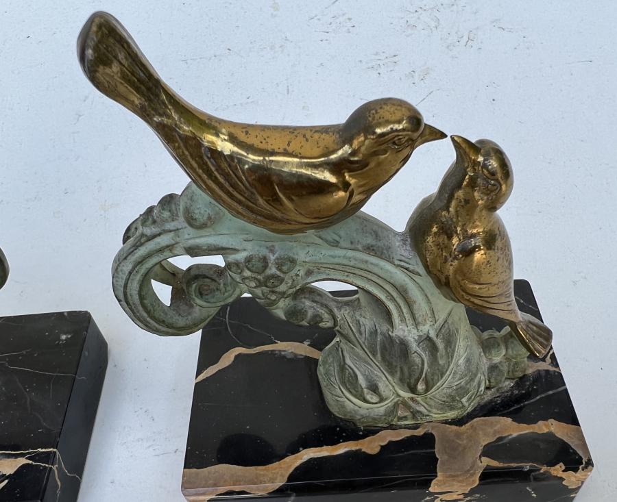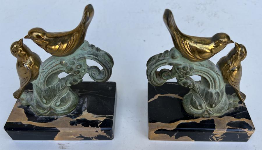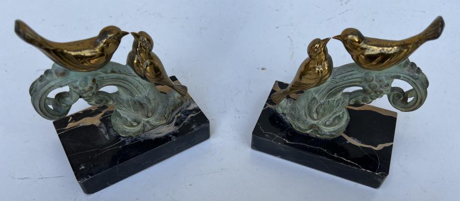 A lovely pair of 1930's French Deco portoro marble base 'lovebird' bookends.