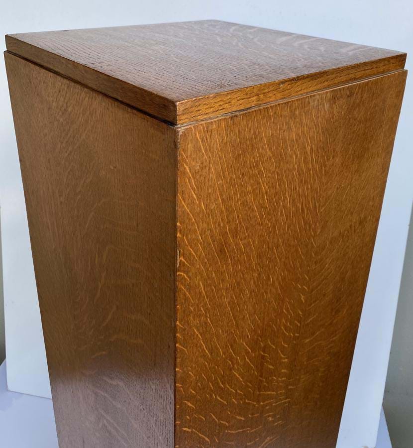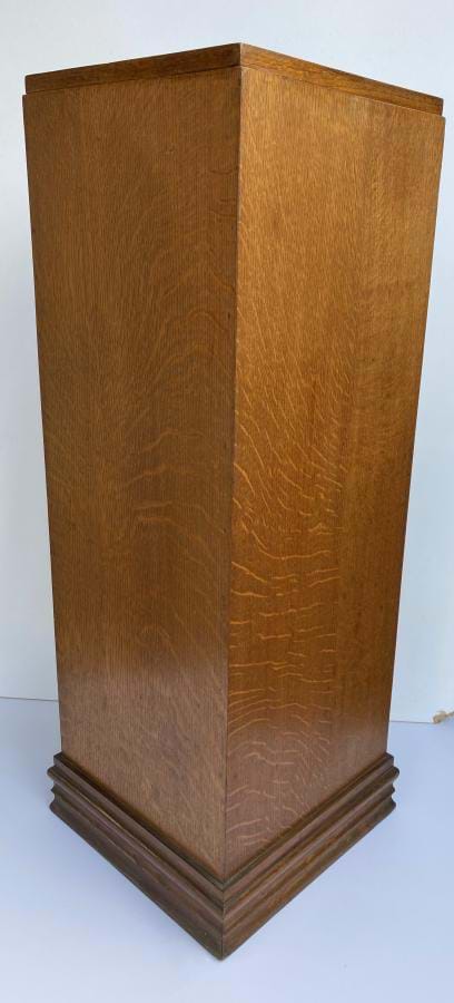 Large 1930's French deco oak pedestal with classic design and proportions. Excellent condition. Measures 950mm tall and is 330mm square.