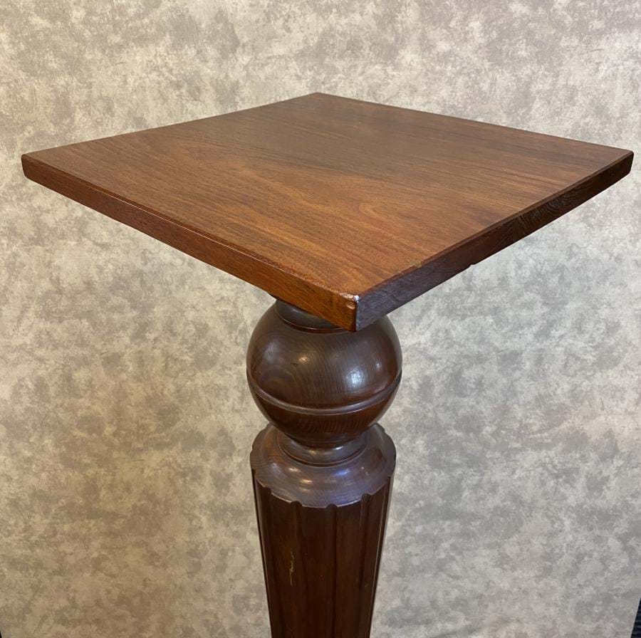 Tall 1930's/40's solid Australian blackwood pedestal with turned and fluted column. Presented in excellent detailed condition. Measures 1090mm tall and the top is 350mm by 340mm. Base is 350mm square.