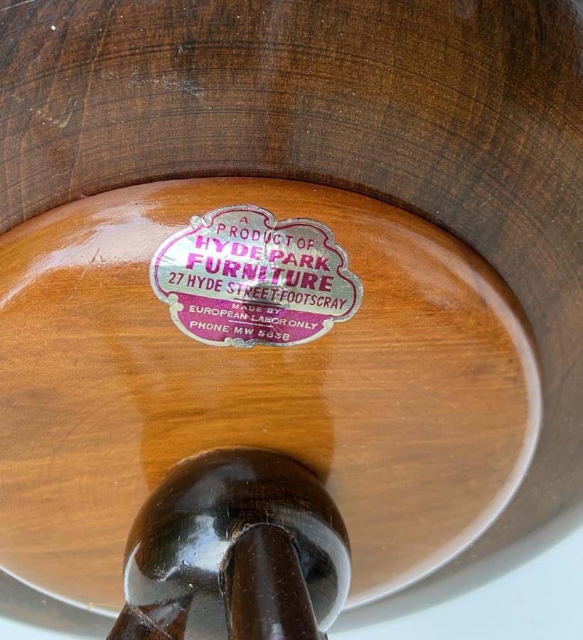 1950's Australian (Hyde Park Furniture, Footscray) tripod occasional table with very useful handles for moving!