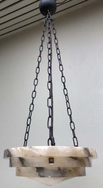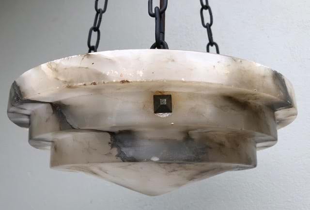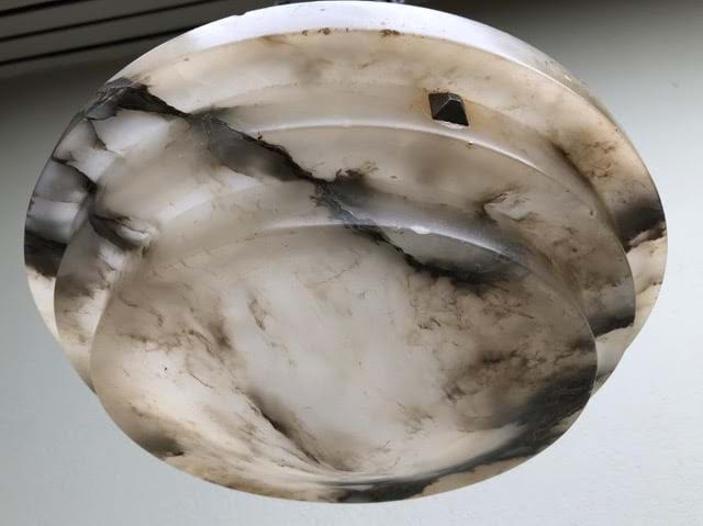 A classic 1930's Deco Italian alabaster ceiling light shade with great shape and colouring.