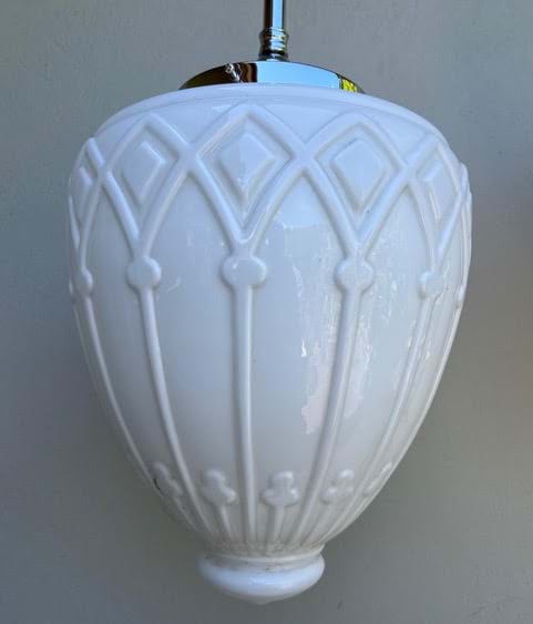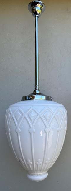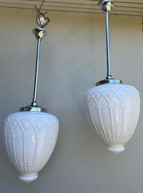 Great 1930's Deco/Gothic white moulded glass light shades made by Crown Lighting (Sydney).