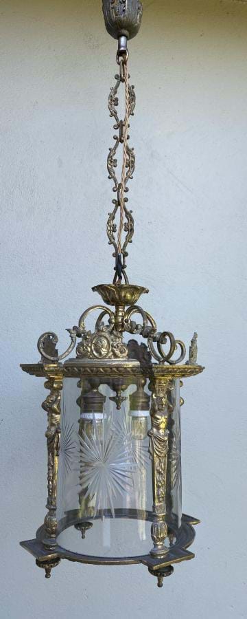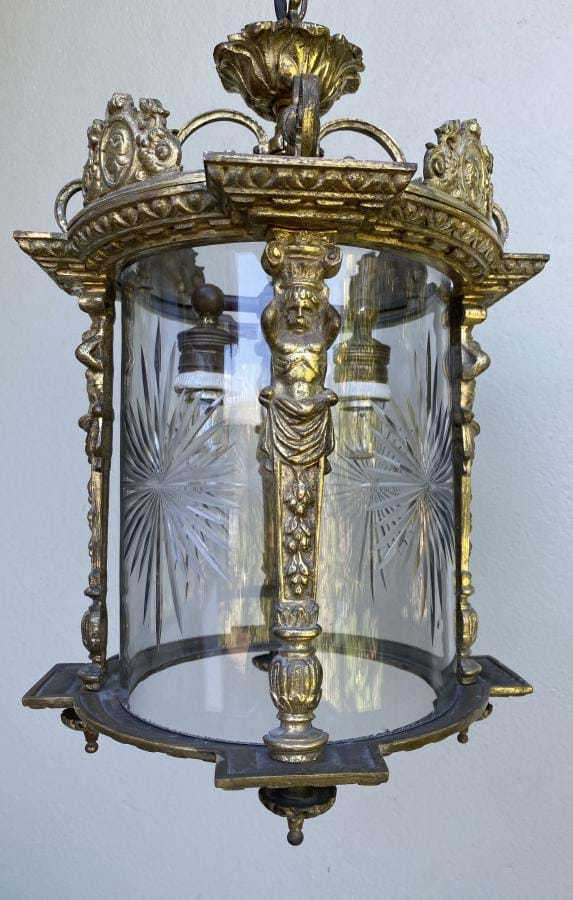 Large French Bronze Figural Lantern