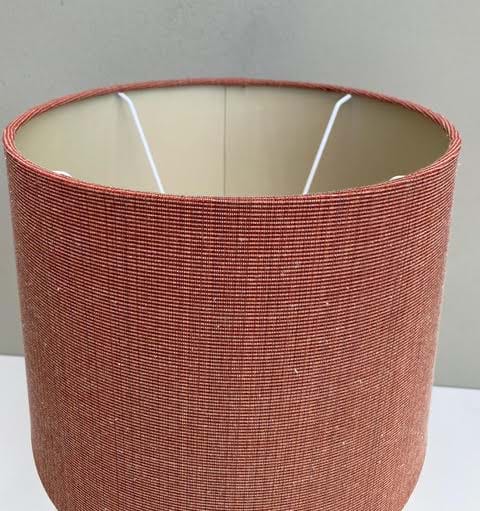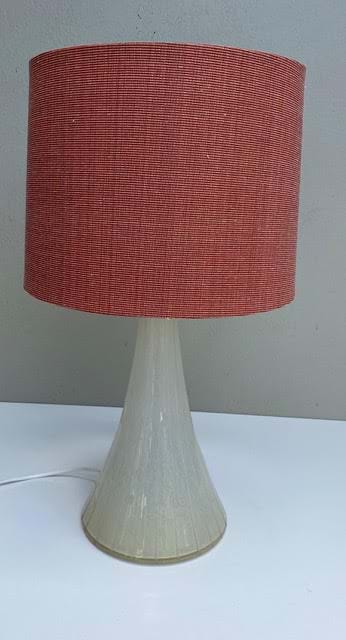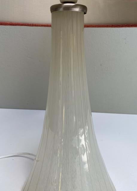 A tall 1950's Italian Murano off white tapered/fluted column glass lamp with (new and quite complementary) lined fabric shade.