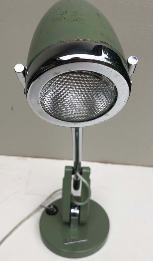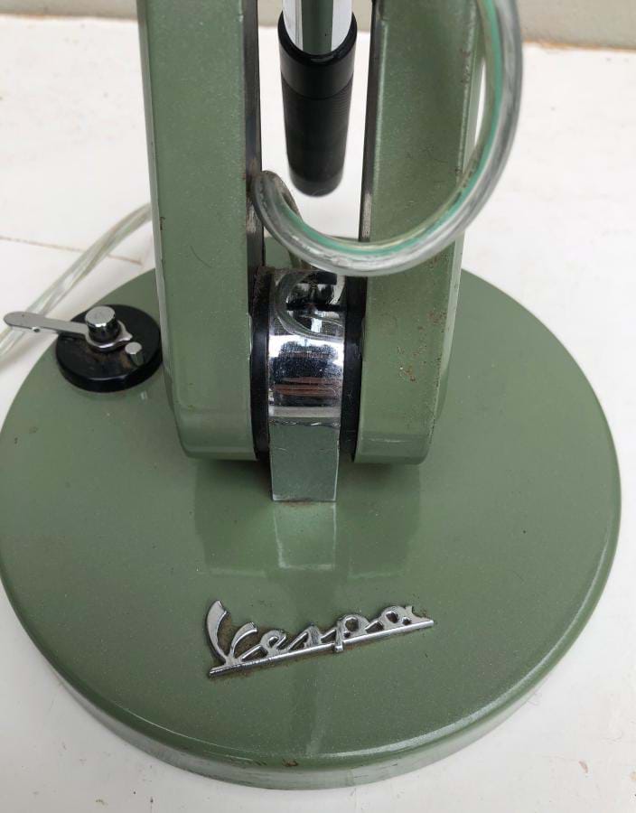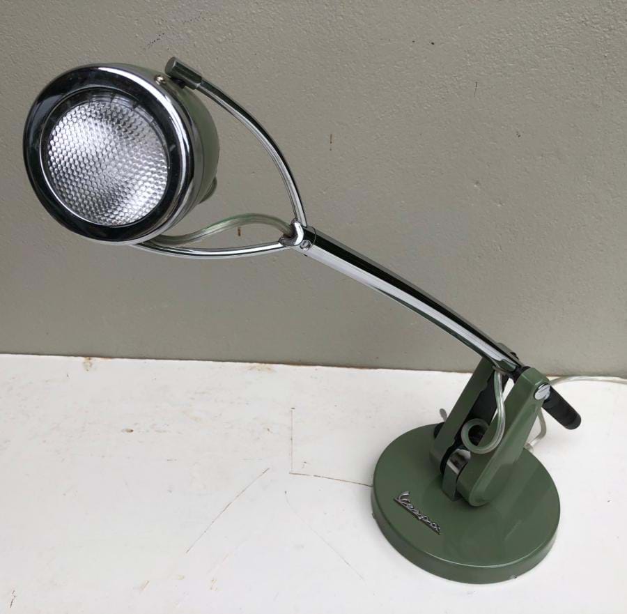 Not all that old (1990's)..... but very well designed and made!....an official limited production licensed Vespa chrome and green desk lamp with design features based on the original Vespa motor scooter....such as the shade in the form of the headlight of the 1946/ '98' model.