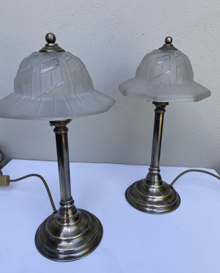 Brass Lamp/French Deco Shade Pair